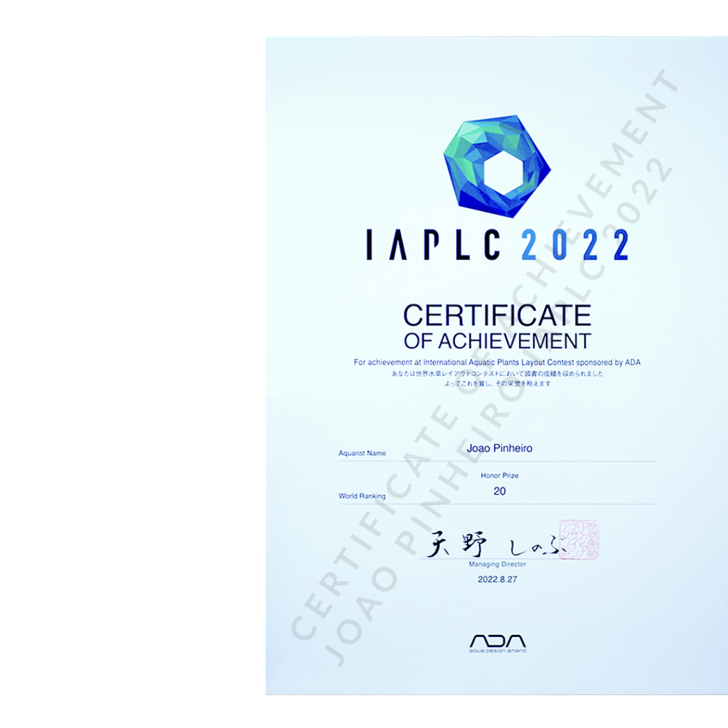In 2022 I have been selected as the 20th position in the prestigious International Aquatic Plants Layout Contest (IAPLC).